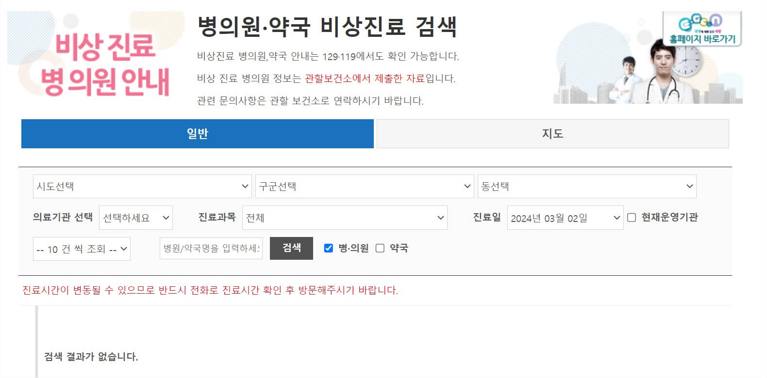 ✅ 전공의 파업으로 병원진료를 받지 못하고 여러 병원을 찾아다니는 일이 실제로 일어나고 있습니다. 의료공백이 현실환 된 건데요. 특히 경증 환자의 경우 상급병원 응급실을 방문할 경우, 응급실 의사 부재로 특정 진료과목이 진료가 불가한 경우가 있으니 반드시 방문 전에 검색해 보시는 것을 추천드립니다.