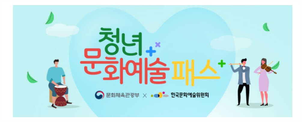 문화체육관광부와 한국문화예술위원회에 따르면 2005년생 청년(19세) 들을 대상으로 뮤지컬, 연극, 무용, 클래식 등 공연과 전시 관람에 사용할 수 있는 '청년문화예술패스'를 3월 28일부터 신청가능 합니다.