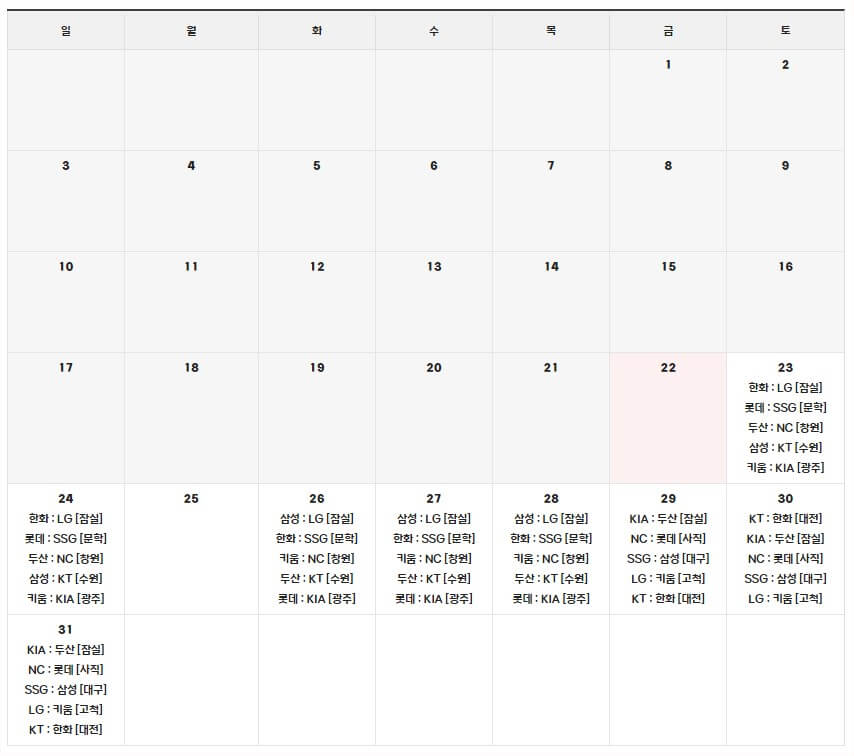 SSG, LG, KT, KIA, 삼성, 한화 경기 예매