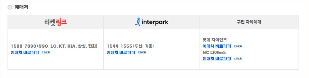 2024 프로야구 예매처는 모두 3곳 입니다. 티켓링크, 인터파크 티켓, 구단 자체예매를 통해 예매가 가능합니다.
