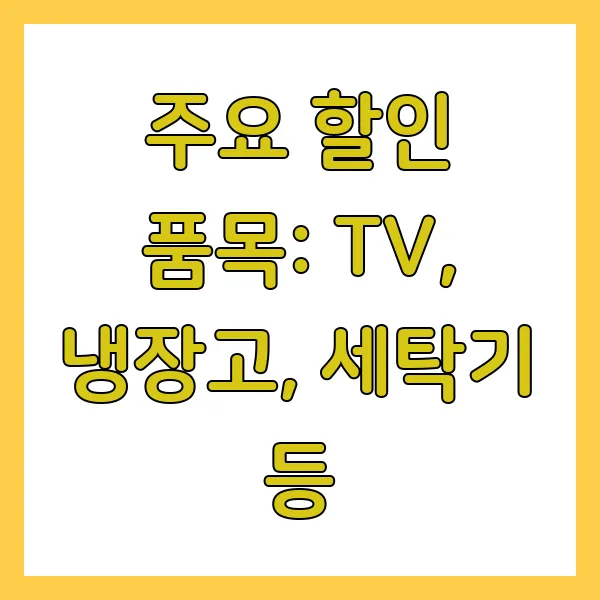 주요 할인 품목:TV, 냉장고, 세탁기 등